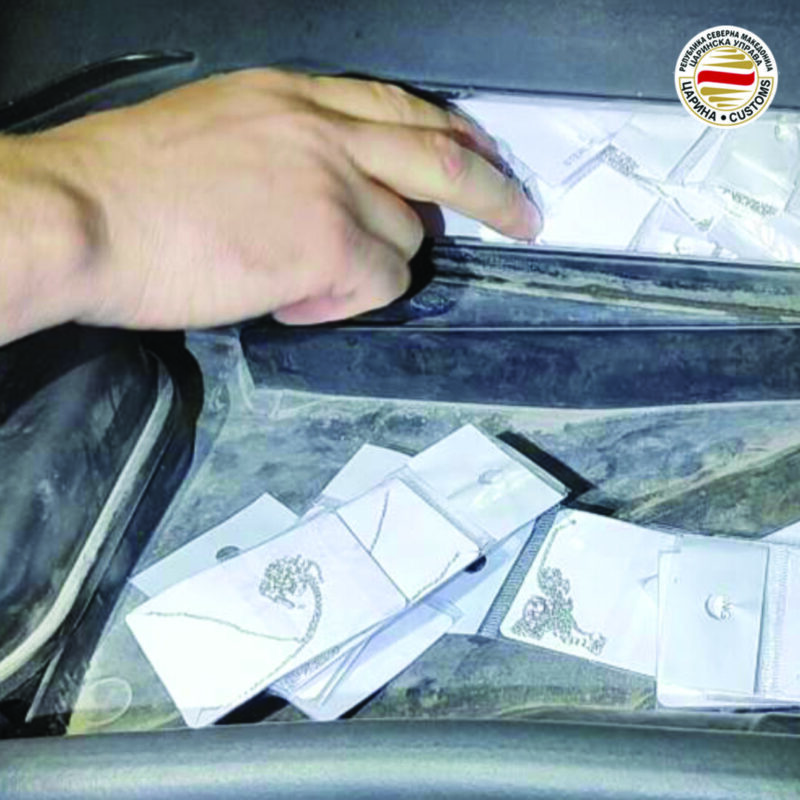 Имено лицето во вечерните часови пред полноќ, на влез на граничниот премин се пријавил со туѓ автомобил за што имал одобрение за управување. Поради сомневање селектиран е за детална контрола, при што во фабричките празнини зад предните бришачи, како и во фабричката празнина зад фиоката пред совозачкото седиште пронајдени се 387 парчиња нараквици, 134 пара обетки и 759 ланчиња. Случајот е предаден во Одделението за истраги при Секторот за контрола и истраги од каде е поднесена кривична пријава.