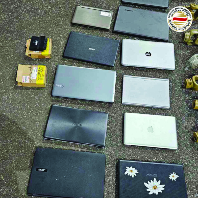 Струмичанец се обидел да криумчари во државата 6 употребувани велосипеди, 13 употребувани лаптопи, 2 компјутери за мотор и 30 крстачи за кардан. Во обидот е спречен од мобилен царински тим кој при контрола на комбето со кое управувал ја откри непријавената стока. Имено на прашање на царински инспектор дали има нешто да пријави лицето одговорило дека има скара, скала, агрегат, прскалка, при што поради сомневање е селектиран за контрола и во четири вреќи и патни торби се пронајдени непријавените производи.