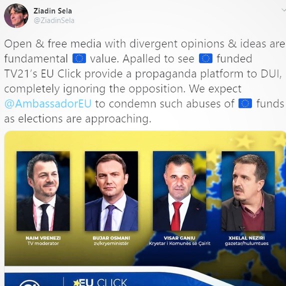 Ваквата објава на Села следуваше кога во емисијата „ЕУ клик“, која инаку е поддржана од проектот „Нордика“, гостуваше Бујар Османи во својство на Национален координатор за странска помош и Главен координатор на сите локални самоуправи во борбата против Ковид-19, како и Висар Ганиу, кој е градоначалник на Чаир и лице што имаше позитивен тест на Ковид-19.