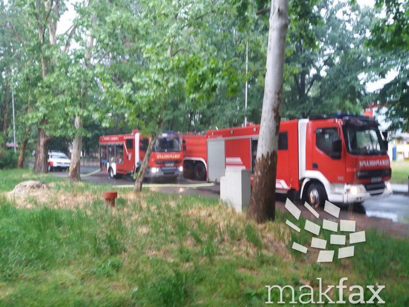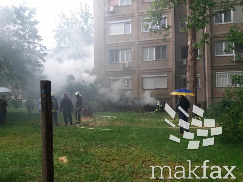 Пет противпожарни возила го гасат пожарот што изби во подрумските простории од зграда на улицата „Владимир Комаров“ во скопската населба Аеродром.