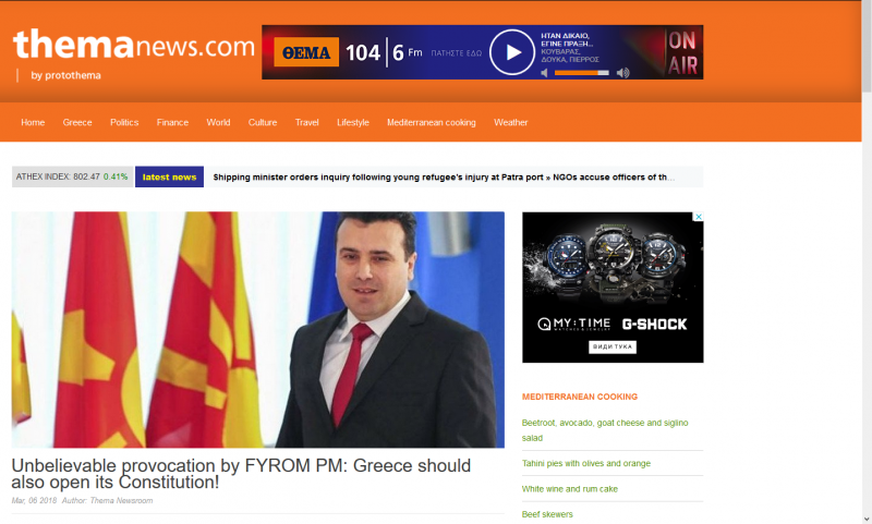 Грчките медиуми со остри критики по вчерашната изјава на македонскиот премиер, Зоран Заев, кој рече дека и Грција треба да го отвори својот устав за да се види како јужниот сосед се грижи за својот народ надвор од државата.