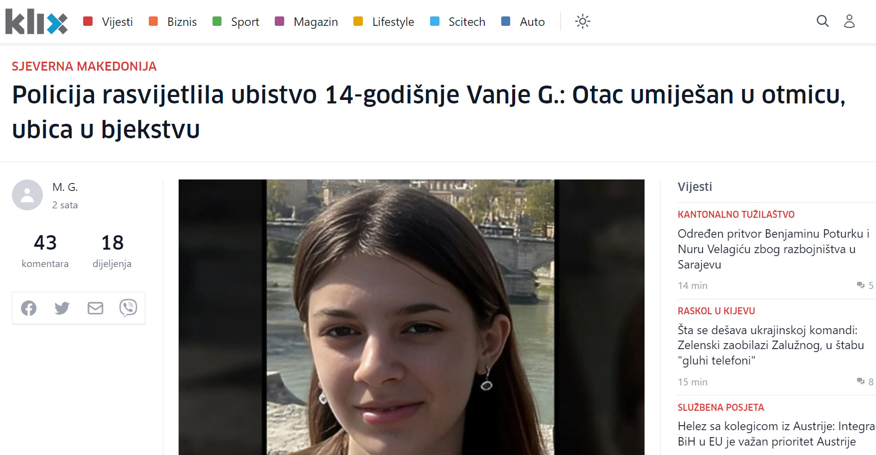 Случајот со убиството на 14-годишната Вања денес е главна вест и во медиумите во регионот.