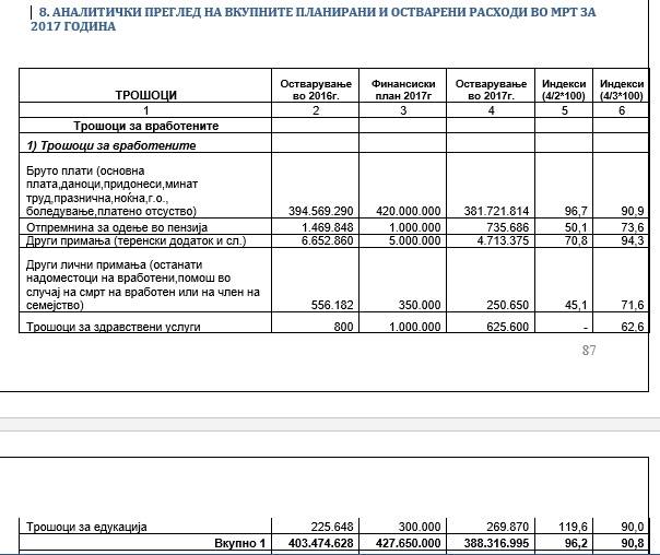 МРТ без сериозна анализа, со голи бројки и набројувања во годишниот извештај за 2017 година, се пофали дека е јавен радиодифузен сервис кој успешно ја реализирал задачата. Извештајот за тоа колку е потрошено, што и како се работело, е испратен до Собранието, каде што пратениците треба да го усвојат.
