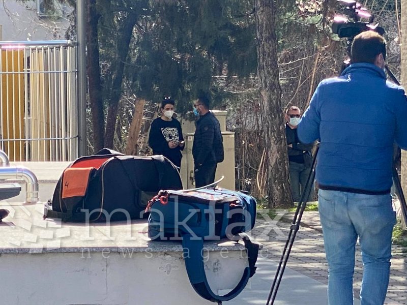 Бизнисменот Орце Камчев е спроведен во Кривичниот суд, а пред зградата го чекаат три лица, меѓу кои и Наташа Савова, вработена во една од компаниите на Камчев.