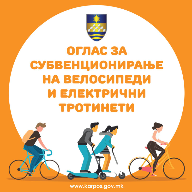 Сите полнолетни граѓани на Карпош, кои ќе купат нов велосипед или е-тротинет, почнувајќи од денеска (3 февруари), може да аплицираат на јавниот оглас за одобрување субвенции, кој го распиша оваа скопска општина.