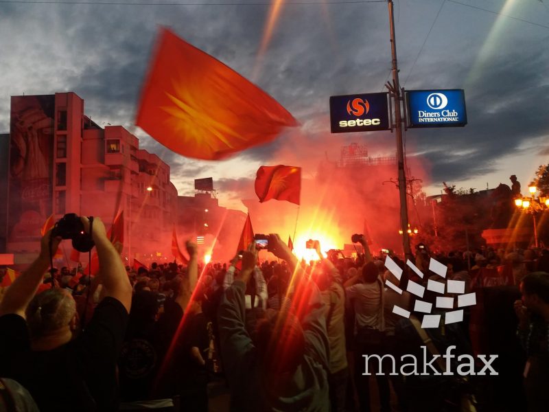 Се пее државната химна и патриотски песни на протестот организиран од група граѓани „Млади за Македонија“ кој се одржува пред Собранието против промена на името.