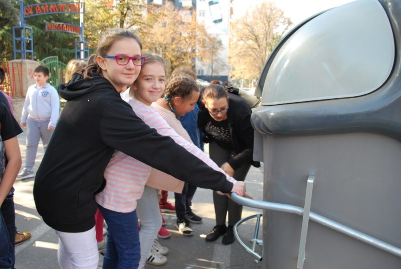 ЈП „Комунална хигиена“ – Скопје спроведува едукација на учениците од скопските основни и средни училишта како правилно да ги употребуваат новите садови за отпад.