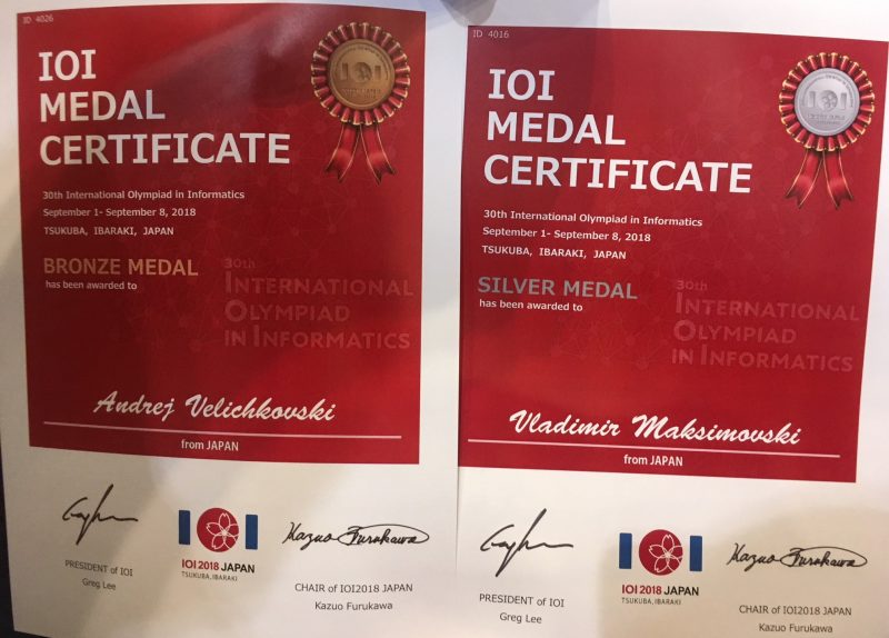 На ИОИ 2018 учествуваат вкупно 335 ученици од 87 земји од целиот свет. Во ваква исклучително силна конкуренција, вториот сребрен медал во историјата за Македонија го освои Владимир Максимовски, додека бронзениот медал го освои Андреј Величковски.