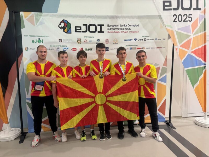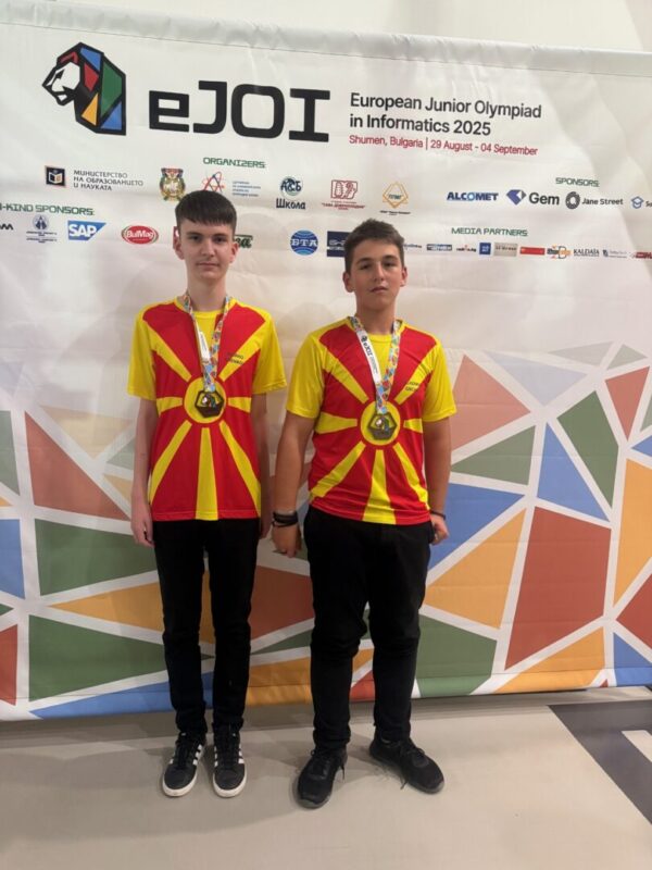 На 9-тата по ред Европска јуниорска олимпијада по информатика (ЕЈОИ 2025), која од 29-ти август до 4-ти септември се одржува во Шумен, Бугарија, младите македонски ученици – информатичари постигнаа огромен успех: по втор пат во историјата на ова натпреварување македонскиот тим освојува златен медал, но овој пат надополнет и со еден бронзен медал.