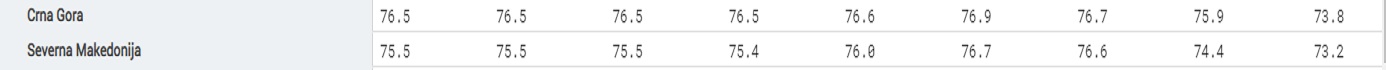 Просечниот животен век при раѓање на Македонецот во 2021 година бил 73,2 години – 75,5 години за жени и 71,1 години за мажи- за една година и два месеци покус во однос на 2020 година и две години и три месеци покус во однос на 2013 година, покажува најновата анализа на Евростат.