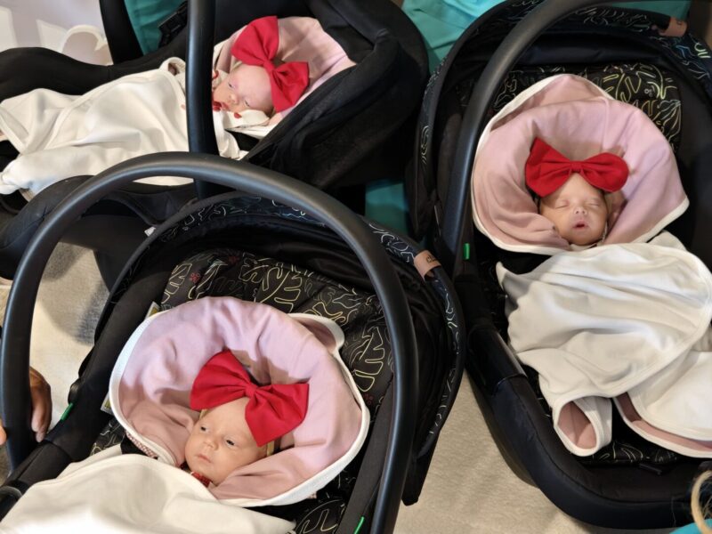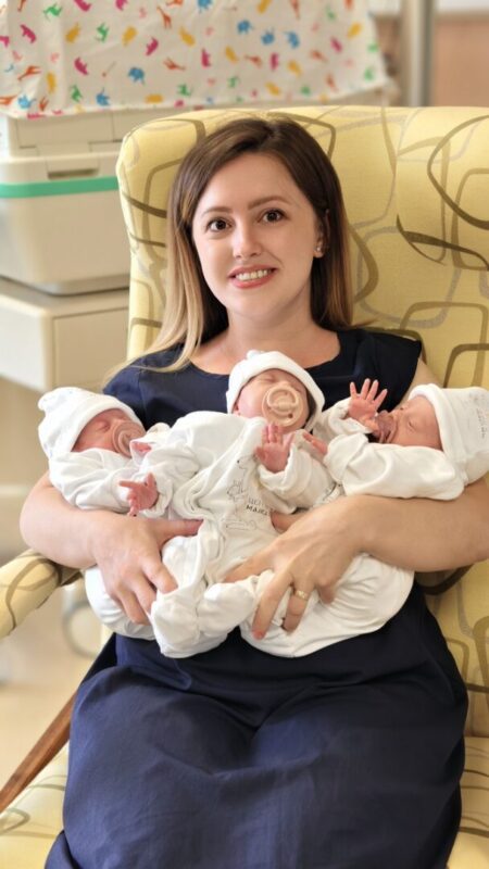 Тројката се роди на 4 јуни 2025, од природно зачната бременост, што е реткост во современата медицина. Родени со царски рез 9 недели пред очекуваниот термин, во 31 гестациска недела, новороденчињата се во стабилна состојба и подготвени да си одат во својот дом.
