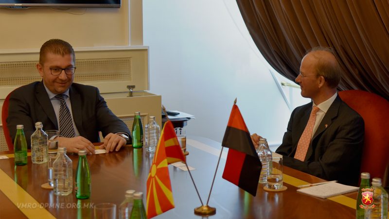 Мицкоски, додаваат во соопштението од партијата, исто така за време на средбата го потенцирал ставот на ВМРО-ДПМНЕ за Договорот со Грција, односно истакнал дека тој останува цврст и принципиелен и дека партијата не може ја поддржи содржината на истиот.