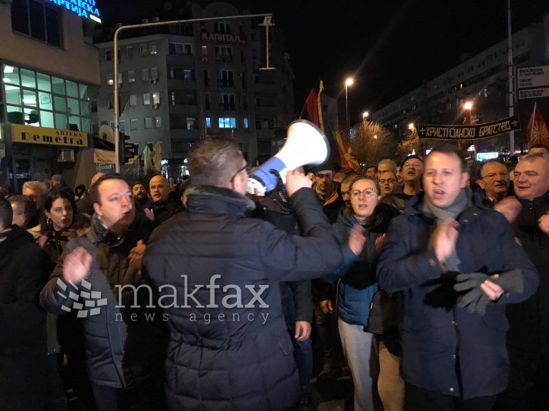 „Ќе ве поразиме жестоко на следните избори и ќе ви покажеме каде заслужувате да бидете – на буниште“, порача лидерот на ВМРО-ДПМНЕ, Христијан Мицкоски, на протестот пред Владата.