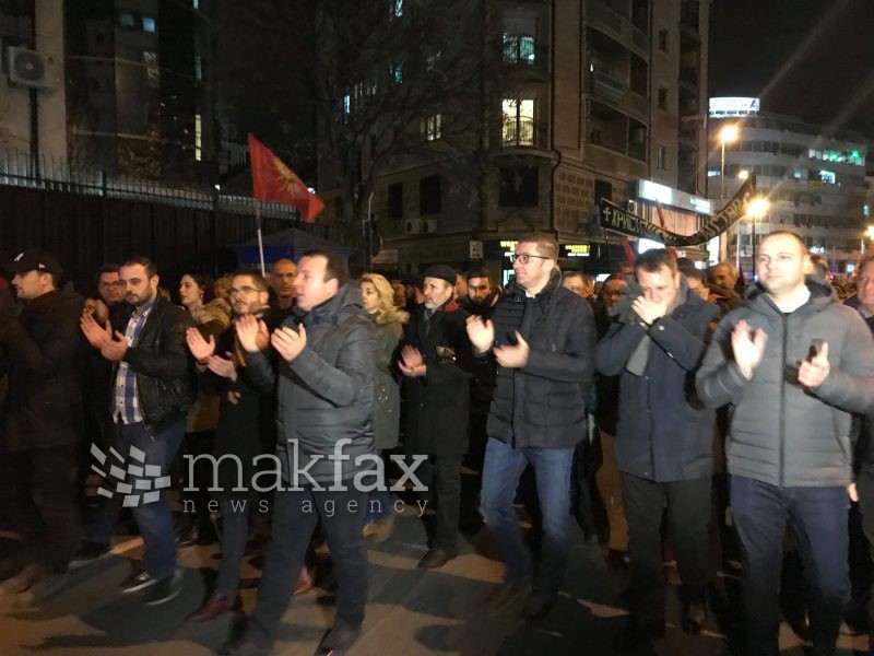 „Чувствувам емоција, љубов, мотив за да го издиме патот и да стигнеме до нашата цел – победа на редовни или предвремени избори кога и да се одржат. Ќе дојде денот кога ќе одговарате сите до еден. Каде е министерот за МВР да излезе да каже за убиствата? Полесно му беше да ги апси пратениците, да пушта полиција околу штабот, да ги претресува возилата што излегуваат од штабот. Ќе дојдат избори, а како секогаш, сакам да бидам искрен: за да има избори, мора да се избориме. Ќе дојдат избори, еве доаѓаат претседателските. Ајде да победи нашиот кандидат. Тоа е првиот чекор кога ќе ја оствариме нашата победа. До тогаш ќе бидеме на улиците оти така ќе дојдеме до триумф. Ветувам дека ќе работам трипати повеќе од нив за да ги победиме, а ќе работиме петпати повеќе за да ја исправиме Македонија на нозе, да не е клекната“, рече првиот човек на ВМРО-ДПМНЕ.