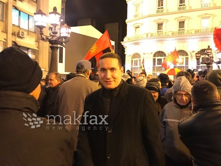 Тој рече: ,,Да ги поздравиме луѓето на Балканот“ по што заедно со поддржувачите извикуваше „Македонија, Македонија“ и „Оставка, оставка“.