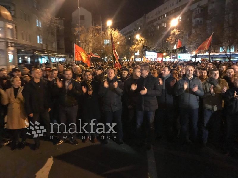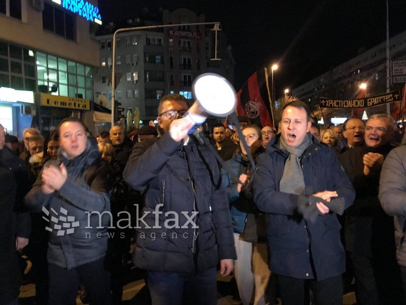 Многубројни членови и поддржувачи на ВМРО-ДПМНЕ попладнево го почнаа протестниот марш пред седиштето на партијата. Според рутата на вечерашниот протест, демонстрантите од белиот дворец маршираат до Владата.
