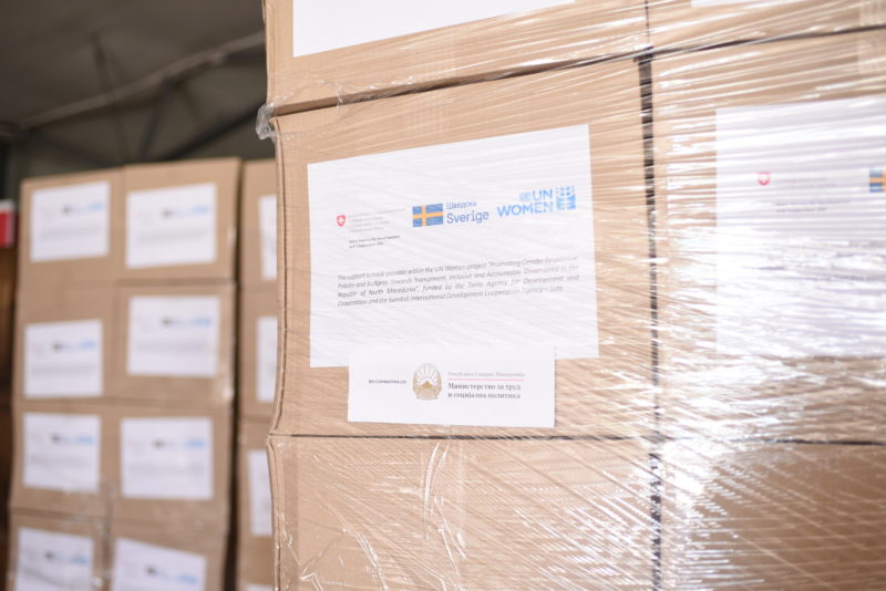 Министерството за труд и социјална политика во соработка со UN Women – тело на ОН за родова еднаквост и зајакнување на жените и финансиска поддршка од Швајцарската агенција за развој и соработка (SDC) и Шведската агенција за меѓународна соработка и развој – Сида, обезбеди 1.860 пакети со храна и хигиенски продукти за оние кои се најсилно засегнати од кризата предизвикана од Ковид-19.