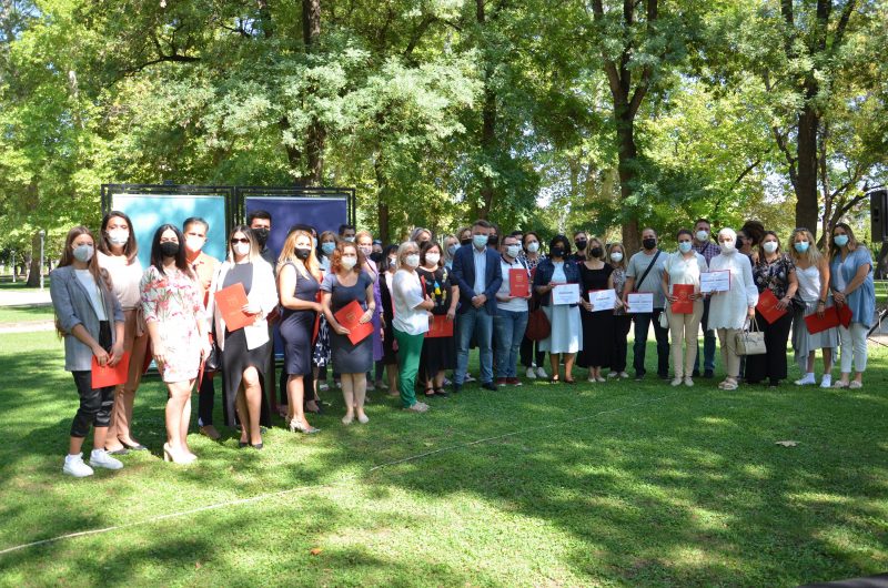 Град Скопје им додели признанија и награди на 45 наставници од седум средни училишта на Град Скопје за нивниот придонес и активно учество во унапредувањето на меѓуетничката интеграција во образованието преку реализација на заеднички часови со ученици што учат на различни наставни јазици.