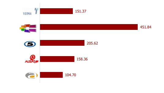 Највисоки приходи од рекламирање повторно остварила ТВ Сител во износ од 416,05 милиони денари, односно 43,40% од вкупните приходи за реклами и телешопинг на овие пет телевизии.