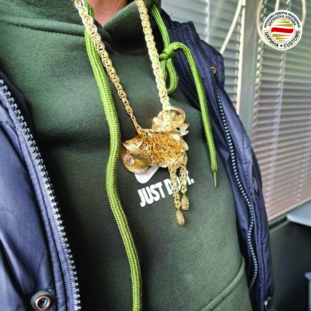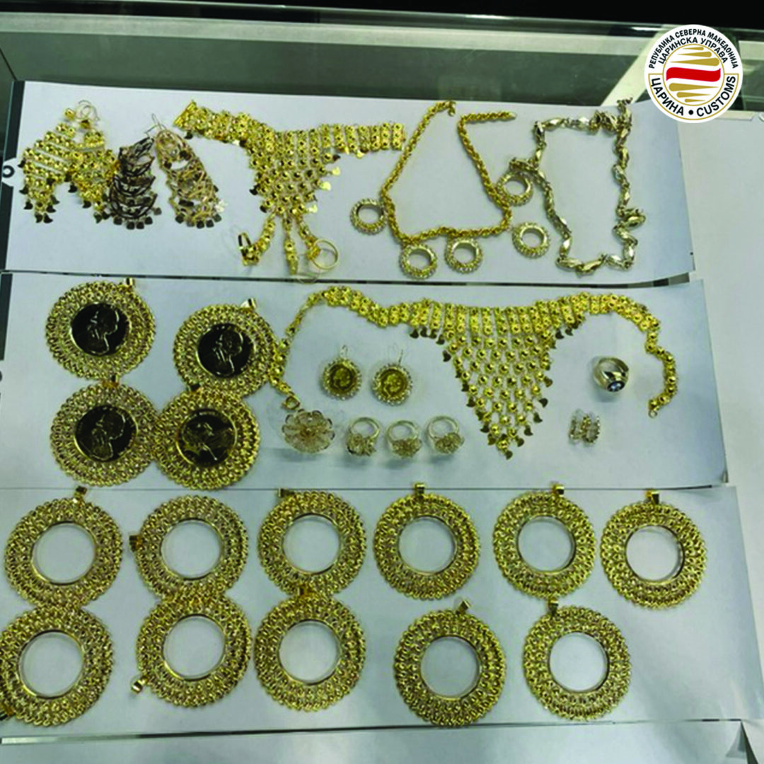 Запленети се 248 грама злато, со проценета вредност од речиси 12 илјади евра, што двајца сопатници во обид да го скријат планирале да го изнесат од државата, без да го пријават кај царинските органи.