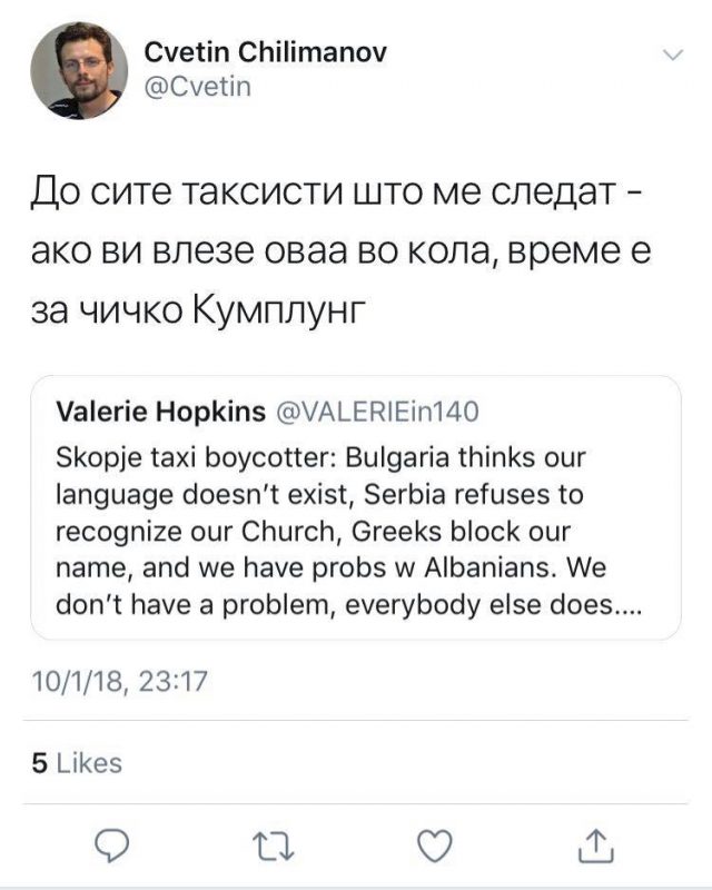 Здружението на новинарите на Македонија, Самостојниот синдикат на независни новинари и медиумски работници и Советот за етика во медиумите на Македонија остро го осудуваат повикот за насилство на Цветин Чилиманов, вработен како новинар во Македонската информативна агенција, кој вчера преку Твитер побара од македонските таксисти да ја силуваат новинарката Валери Хопкинс кога ќе се качи во нивното возило затоа што не му се допаѓаат нејзините текстови за состојбата во Македонија.
