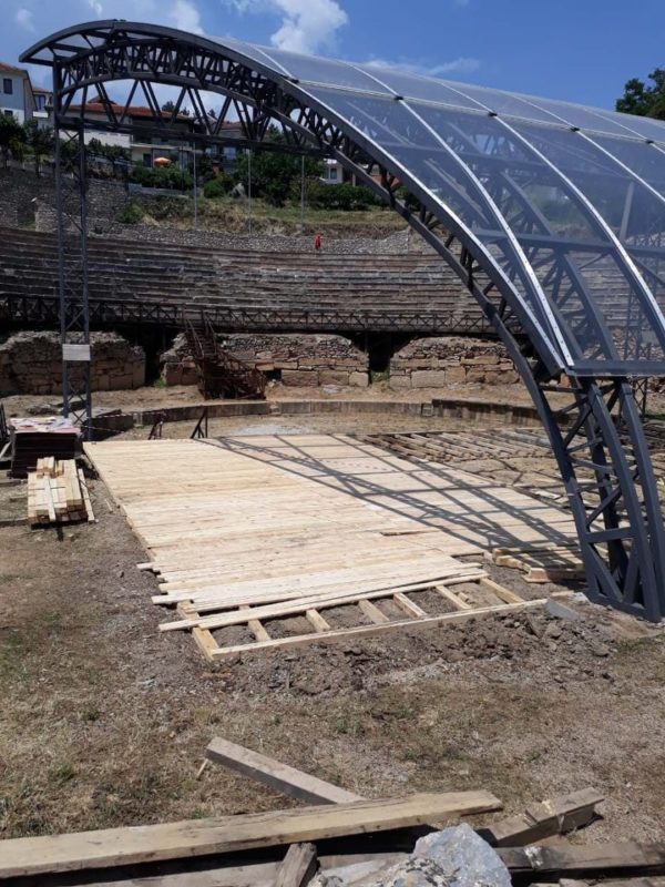 Националната установа Заводот за заштита на спомениците на културата и Музеј – Охрид во соработка со Националната установа „Охридско лето“ ја реконструира сцената на Античкиот театар. Станува збор сцена со површина од 270 метри квадратни која поради дотраеност беше во исклучително лоша состојба. Градежните зафати ги извршија екипи на јавното локално претпријатие „Градски гробишта “ и технички лица вработени во Завод и Музеј – Охрид, кои неуморно работеа во текот на изминатите осум дена.