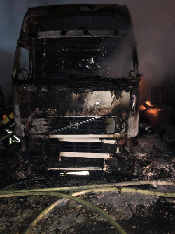 Од пожарот на соседниот плац биле делумно опожарени две полуприколки и четири полуприколки ладилници.