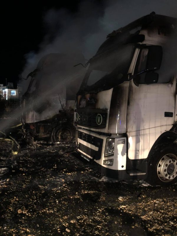 Опожарени камиони на плац во Бутел