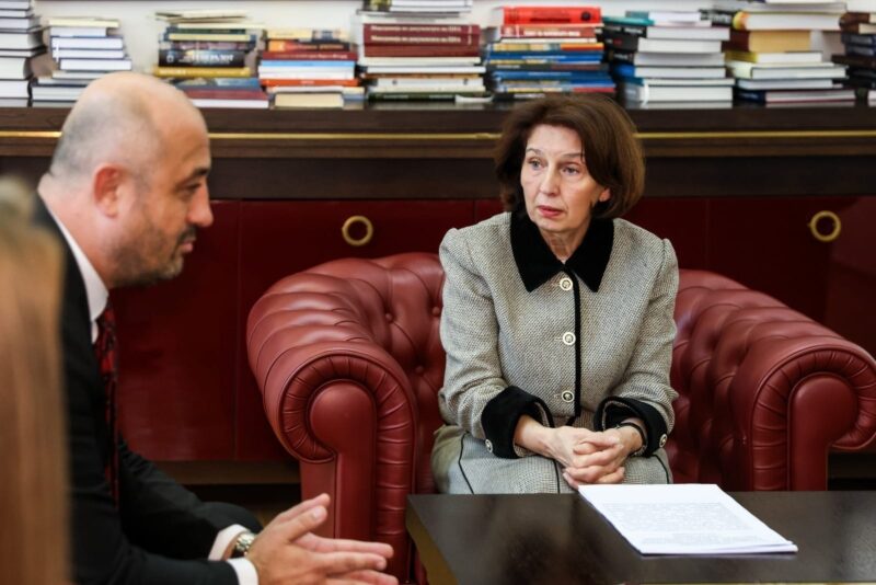 За таа цел, деканот на факултетот, Влатко Неделковски, продеканката за настава, Андријана Мисовски и професорите Иван Анастасовски и Серјожа Гонтарев ја запознаа претседателката со предлог проектот, односно со планираните истражувања и временската рамка во којашто ќе се одвиваат (2026-2028), очекуваните резултати и стратешката одржливост.