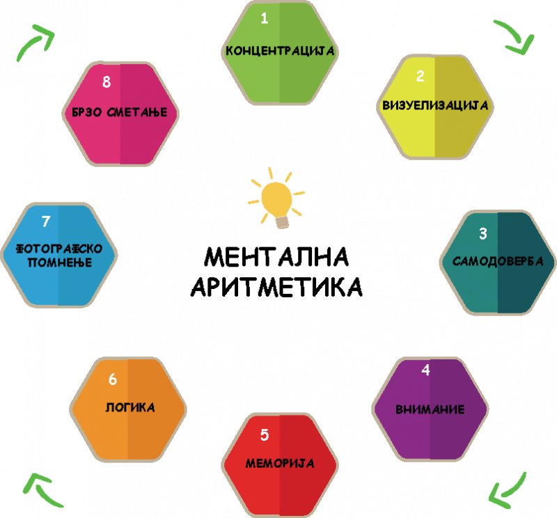 Учењето се заснова на употреба на алатката за пресметување – абакус, со чија визуализација се постигнува извонредно брза пресметка, каде што децата исклучиво мислат на начинот преку кој изведуваат неколку математички операции. Научните студии докажаа дека менталната аритметика претставува најдобра обука за мозокот.