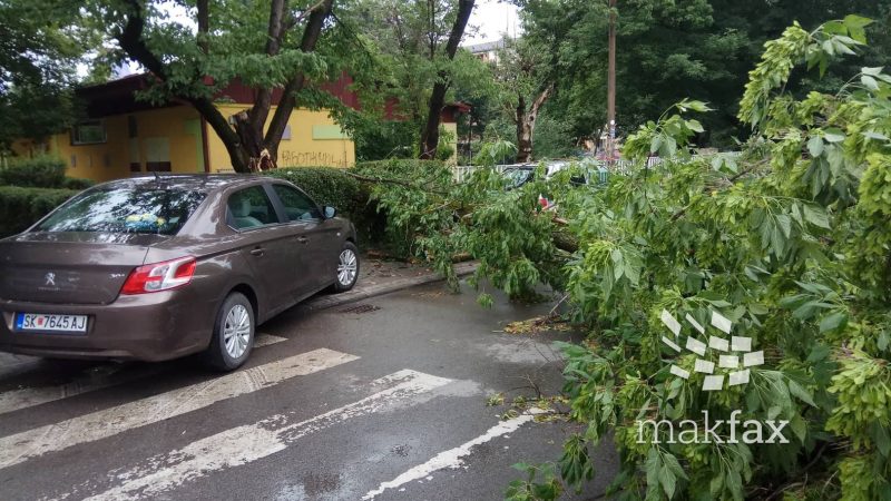 На улицата пред Драмски е паднато големо дрво што го оневозможува сообраќајот.