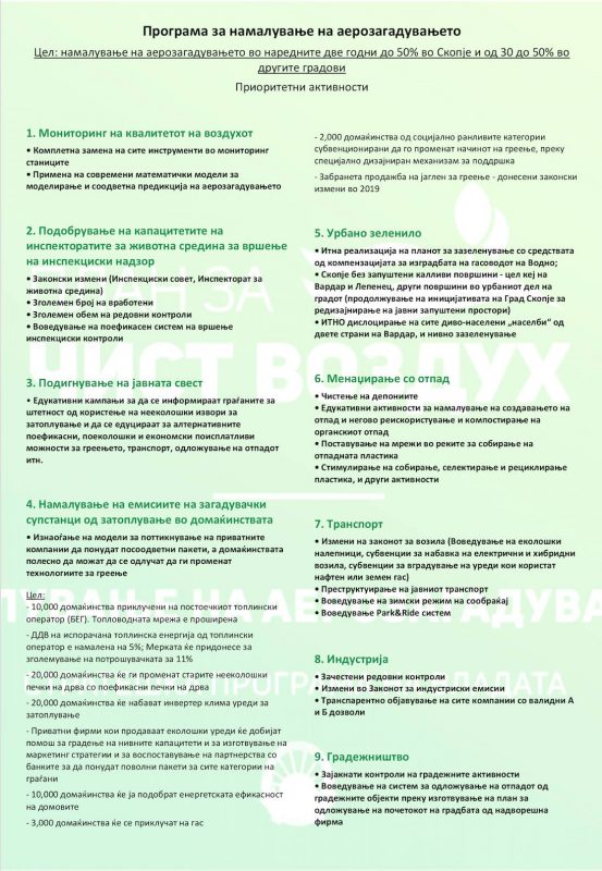 Програмата е соодветна за предизборна програма, но не и за усвоена програма од страна на Владата за намалување на аерозагадувањето како стратешки приоритет, две години по завршување на изборите.