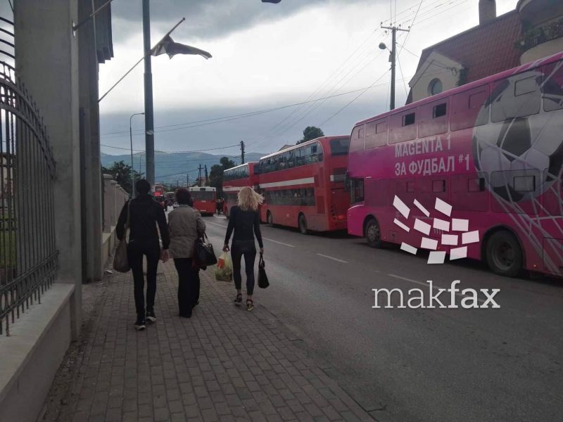 Жиците од бандерата се паднати ниско и тоа ги спречува автомобилите и автобусите да се движат по улицата, кон Радишани. Засега не е познато како се случил инцидентот.