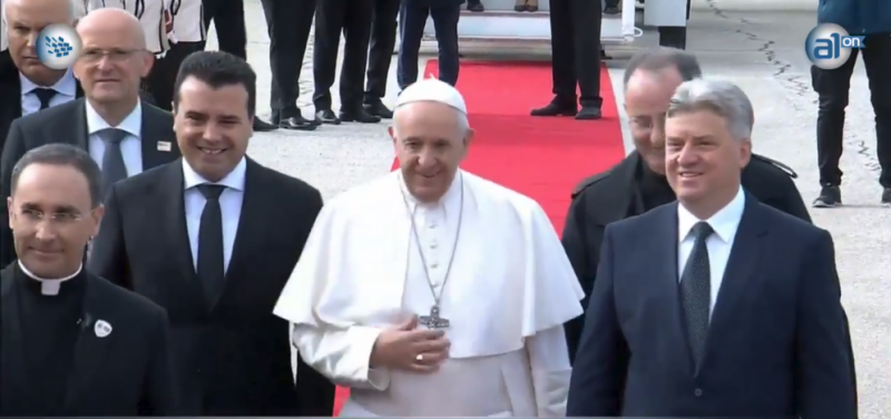 Поглаварот на Римокатоличката црква, папата Франциско, утрово пристигна на скопскиот аеродром.