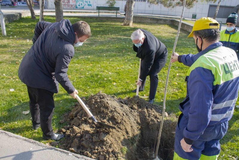 Градоначалникот на oпштина Центар, Саша Богдановиќ, и рускиот амбасадор Сергеј Баздникин, денеска засадија 10 садници од видот јавор и со овој чин ги најавија хортикултурното уредување на паркот и идејното решение за реконструкција на детското игралиште зад Универзалната сала.
