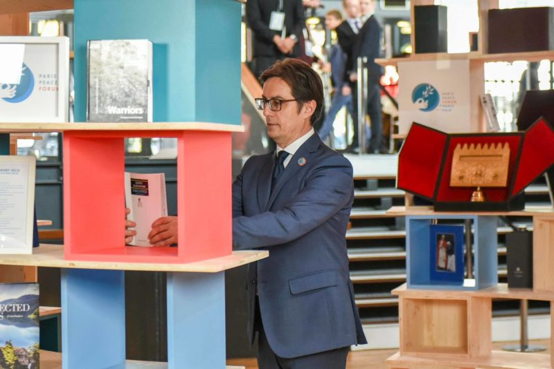 Претседателот Стево Пендаровски за време на посетата во Париз, во библиотеката на Парискиот мировен форум дал копија од книгата „Македонија е се што имаме“ од првиот претседател на независна Република Македонија Киро Глигоров.