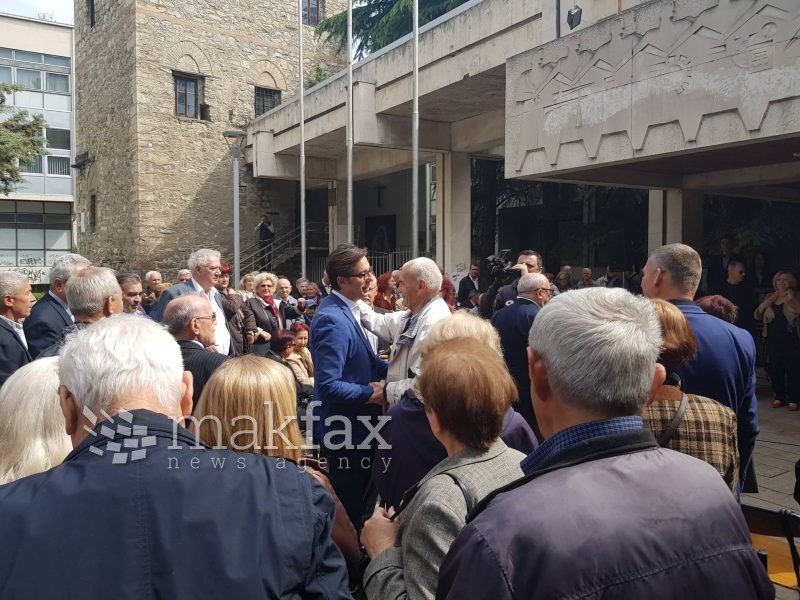 Претседателскиот кандидат поддржан од СДСМ, Стево Пендаровски, утрово одржа средба со пензионерите пред Домот на АРМ во Скопје.