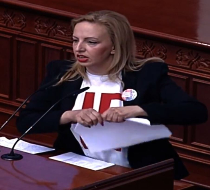 „Со овој лист хартија ќе ја погребате Република Македонија“, додаде таа.