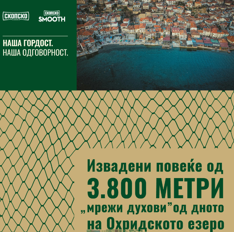 „СКОПСКО“ во 2024 година организираше две големи акции за чистење на Охридско Езеро. Во јуни, 170 волонтери и нуркачи собраа 120 кубни метри отпад од брегот и дното на езерото. Во октомври, со поддршка од нуркачкиот клуб „Амфора“, беа отстранети 3.800 метри напуштени рибарски мрежи, кои го загрозуваа езерскиот екосистем. Со чистење на овие т.н, мрежи духови се обновуваат местата каде што порано се мрестеле пастрмките што придонесува кон враќањето на ендемските видови во нивната природна средина.