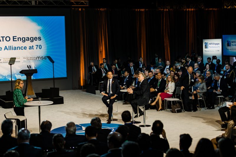 Во рамки на настанот NATO Engages: The Alliance at 70, Димитров, заедно со грчкиот министер за надворешни работи, Јоргос Катругалос, дискутираше за улогата на лидерството во надминување на историски разлики, како клуч за разрешување децениски спорови.