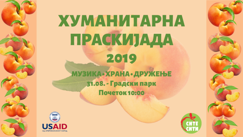 Во Градскиот парк во Скопје, на 31 август (сабота), со почеток во 10 часот, платформата за донација на вишок храна „Сите сити“ ќе ја организира првата хуманитарна „Праскијада 2019“, настан чија цел е да се обезбедат 20.000 оброци за социјално загрозените граѓани.