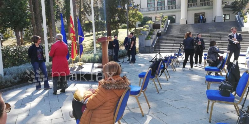Превентивни мерки против коронавирусот за новинарите денеска има и на прес-конференцијата на претседателот Стево Пендаровски, која се одржува на отворен простор.