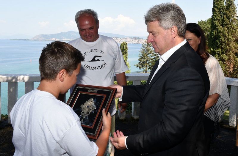 Претседателот Иванов го прими младиот Марко кој го преплива Охридското Езеро