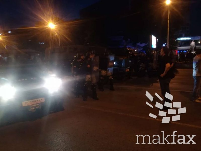Демонстрантите на патот кон Основното јавно обвинителство, застанаа пред ТЦ Маврвка кога полицијата не им дозволи да поминат од кај плоштадот Скендербег, по што тие започнаа да скандираат против нив.