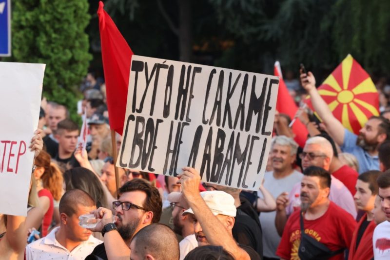 Пред Владата вечерва продолжи протестот под мотото „УЛТИМАТУМ – Не благодарам“. Учесниците се против прифаќањето на францускиот предлог за тргање на бугарското вето и отворање на преговорите за членство на Северна Македонија во ЕУ.