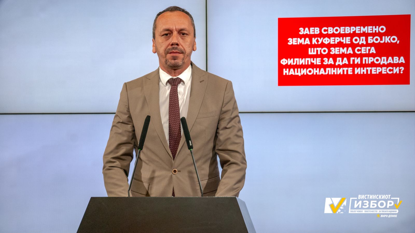„Заев своевремено зема куферче од Бојко, што зема сега Филипче за да ги продава националните интереси?“, праша денеска на прес-конференција, Бране Петрушевски, пратеник на ВМРО-ДПМНЕ.
