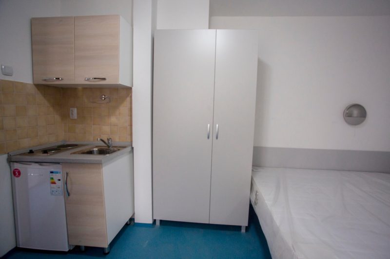 Во овој студентски дом е завршено реновирањето и комплетно се уредени студентските соби со капацитет за 600 студенти, во кои се вградени нови тоалети, поставени системи за видеонадзор и за превенирање од пожари, а во завршна фаза се активностите за целосно уредување на дворот. Се поставуваат нови клупи, осветлување, високо и ниско зеленило, паркинзи за велосипеди, рампи за контрола на влез и излез и е обезбеден пристап за специјални возила.