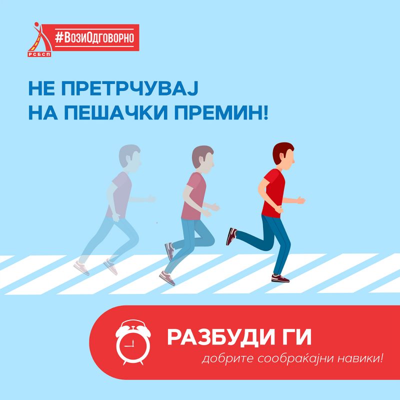 РСБСП потсетува дека почитувањето на сообраќајните правила и прописи е обврска на секој учесник во сообраќајот, вклучително и на пешаците. Согласно со тоа, пешакот треба секогаш да се движи по тротоарот, да ја преминува улицата на пешачки премин, откако ќе се увери дека возилата што се движат по коловозот можат безбедно да застанат, да ги почитува црвеното и зеленото светло на пешачкиот семафор, да не се задржува непотребно на коловозот, да не застанува и да не се движи помеѓу двете коловозни ленти, секогаш да биде внимателен и фокусиран на сообраќајот итн.