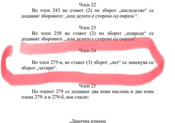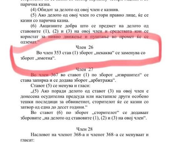 „Макфакс“ вчера објави и дека власта подготвува измени во членот 353 од Кривичниот законик кој се однесува на злоупотреба на службената положба според кој се обвинети десетина лица од предмети на СЈО. Овие измени денеска беа ставени на дневен ред a под притисок на јавноста, тие беа повлечени.