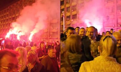 Победата на кандидатот на ВМРО-ДПМНЕ за градоначалник на Скопје, Орце Ѓорѓиевски се слави пред Белата палата.